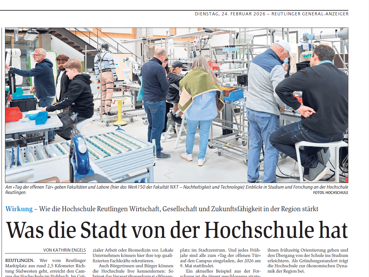 Wie wirkt die Hochschule Reutlingen in die Stadt und die Region hinein? Anhand von Beispielen wird die Verbindung der Hochschule in die Stadtgesellschaft beleuchtet - und umgekehrt.